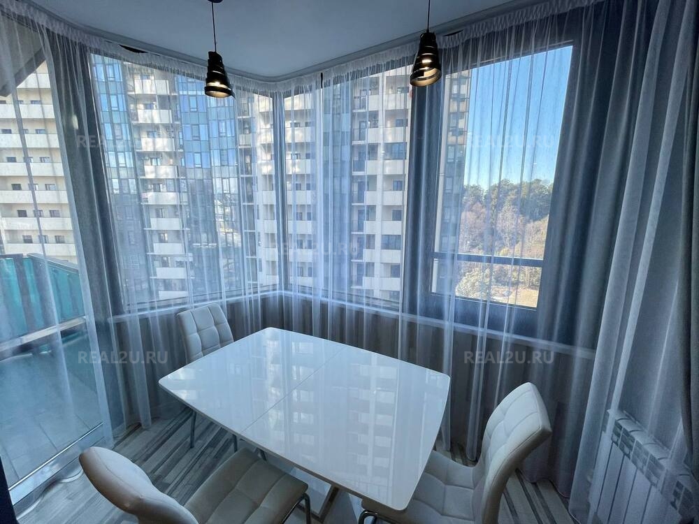 Объект № 12288 В квартире качественный ремон. Спланированно в евро-двушку есть балкон на крыше дома бассейн, джакузи О комплексе: Комплекс состоит из двух 15-этажных жилых корпусов, расположенных в зоне тихой малоэтажной застройки. В непосредственной близости находится летняя резиденция Президента РФ "Бочаров Ручей". До одного из самых чистых пляжей Сочи (Санта-Барбара) 20 минут пешком или 10 минут на автомобиле. Автобусная остановка всего в 500 метрах от комплекса. - на первом этаже расположены коммерческие площади и подземная парковка, обеспечивающие удобство для жильцов. - на крыше бассейн, джакузи - на территории детская площадка, магазин - Рядом расположены магазины, супермаркеты, медицинские учреждения, детские сады и школы. - до самого центра Сочи (парка Ривьера) 5 км